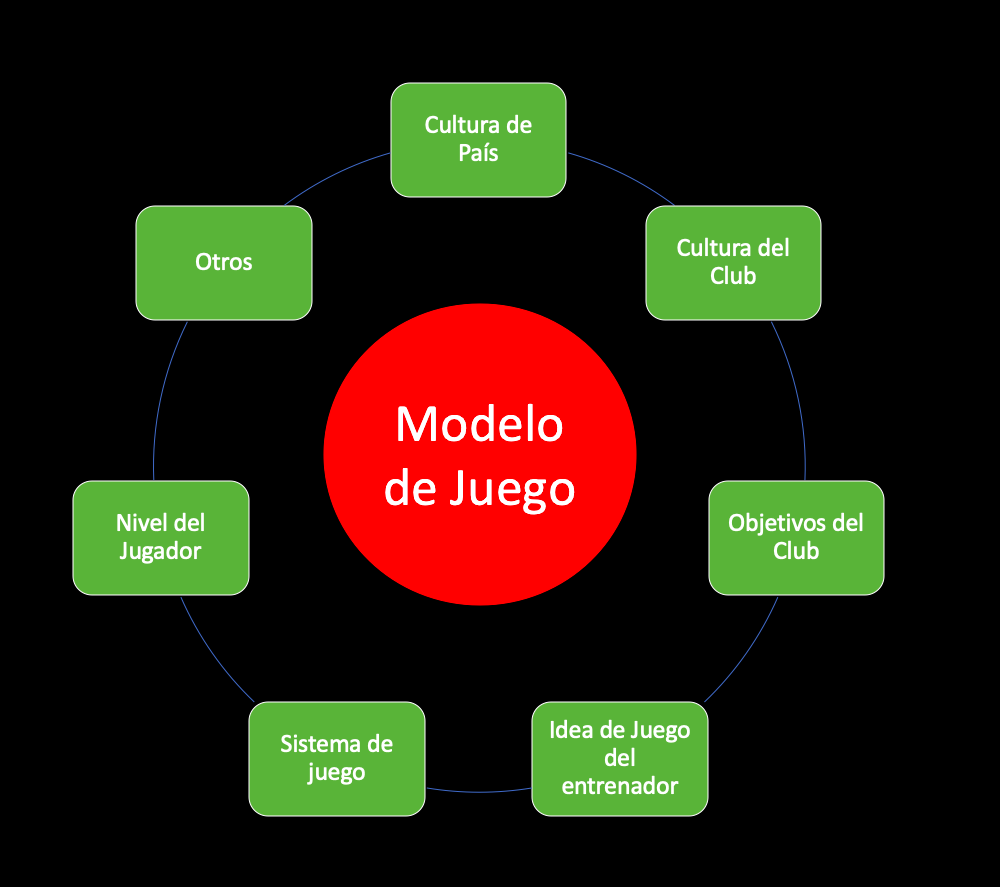 El Modelo de Juego esta basado en la concepción que tiene el entrenador sobre el juego, es decir, se basa en los diferentes comportamientos en Fase Ofensiva, en Fase Defensiva, en sus diferentes Transiciones, todo esto tanto a nivel individual como a nivel colectivo. Siempre este Modelo de Juego tiene que tener relación con el contexto del club, con la idiosincrasia de dicho equipo y todo esto con el fin de conseguir los objetivos previamente marcados por el club.